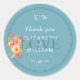 Pegatina Redonda Marco con Rosas, estilo Boda sobre azul retro