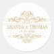 Pegatina Redonda Marco elegante blanco pegatinas de boda personaliz