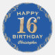 16.º Pegatina de marcos Purpurina azul y oro de la fiesta de cumpleaños. Para una mayor personalización, haga clic en el botón "Personalizar" y utilice nuestra herramienta de diseño para modificar esta plantilla.