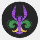Pegatina Redonda Mardi Gras Fleur Lis Crawfish New Orleans