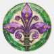 Pegatina Redonda Mardi Gras Sained Glass Fleur de lis