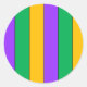 Pegatina Redonda Mardi Gras Stripes Patrón Amarillo Verde Púrpura