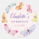 Mariposa acuarela 1er cumpleaños Pegatina redondo clásico