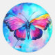 Una hermosa mariposa arco iris con una variedad de tonos azules en un fondo acuarela. Añade tu propio texto para personalizar.