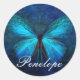 Pegatina Redonda Mariposa azul de alegría y suerte
