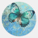 Mariposa azul romántica gracias pegatinas redondos clásicos con nombre y texto personalizables para regalos elegantes y de moda!
