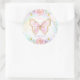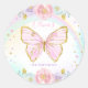 Mariposa Cumpleaños Partido Mariposa Floral Rosa Pegatina Redondo Clásico Todos los diseños son © PIXELPERFECTIONPARTYLTD