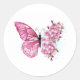 Pegatina Redonda Mariposa de flores con Sakura rosa