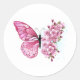 Pegatina Redonda Mariposa de flores con Sakura rosa