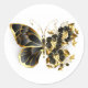 Pegatina Redonda Mariposa de flores de oro con orquídea negra