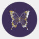 Pegatina Redonda Mariposa elegante de mármol blanco y oro