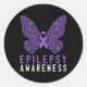 Pegatina Redonda Mariposa Epilepsia Awareness Mes Púrpura Cinta S