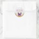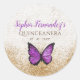 Pegatina Redonda Mariposa púrpura dorada rústica vintage