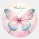 Pegatina Redonda Mariposa Purpurina Pastel Rosa - Gracias -