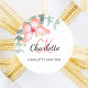 Un elegante fondo blanco. Decorado con mariposa de acuarela verde en rosa oro y melocotón, hojas de eucalipto, ramitas, verde, hojas de oro falsas. Personaliza y añade tu primer nombre, iniciales de monograma y nombre completo. Perfecto para favores de cumpleaños, una despedida de soltera o baby shower.