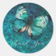 Mariposa verde romántica gracias pegatinas redondos clásicos con nombre y texto personalizables para regalos elegantes y de moda!