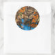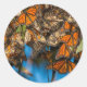 Pegatina Redonda Mariposas monarcas migratorias aferradas a hojas