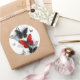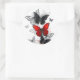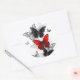 Pegatina Redonda Mariposas Morpho voladoras negras y rojas