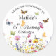Pegatina Redonda Mariposas y flores silvestres Elegante cumpleaños