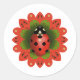 Pegatina Redonda Mariquita de Navidad Rojo Blanco Verde