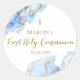 Pegatina Redonda mármol azul de tinta Primera comunión sagrada