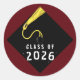 Grad gift stickers, envelope seals and party favor labels featuring classic black graduation cap with gold tassel on maroon background. Perfect for senior grads celebrating with the Class of '26. To customize edit text to change year.