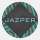 Pegatina Redonda Marrón cebra y Verde azulado con monograma