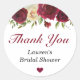 Etiquetas de agradecimiento redondas personalizadas marsala. Completamente personalizables - pueden ser utilizadas para despedida de soltera, baby shower, cumpleaños u otra ocasión. Hechas para coincidir con nuestra Colección Floral Marsala Borgoña. Para artículos coincidentes visite www.zazzle.com/violinevents