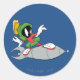 Pegatina Redonda MARVIN EL MARCIANO™ Montando Cohete