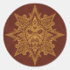 Pegatina Redonda Máscara de sol azteca - Rojo dorado