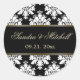 Patrón de damasco blanco y negro bordeado con rayas doradas Pegatina de boda. A continuación se muestran los elementos coincidentes: