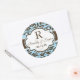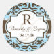 Pegatina Redonda Matrimonio Damasco Azul y Marrón