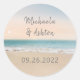 Colóquelos en la parte posterior de las invitaciones de boda con temática playera para completar el aspecto. Un diseño sencillo con fuentes modernas. Personaliza con el nombre de la novia y el novio y la fecha del boda. También se pueden utilizar en las fiestas en la recepción.