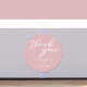 Esta polvorienta rosa boda rosa agradecida pegatina presenta una delicada tipografía blanca para una romántica ceremonia vespertina para una novia femenina a la que le gustan los colores suaves y el mínimo diseño de escritura. Blancas suaves de color rosa pastel para los regalos o favores de fiesta de invitados y novias.