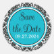 Pegatina Redonda Matrimonio turquesa, negro, blanco Damasco