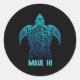Pegatina Redonda Maui Hawaii Tribal Sea Turtle Hawaii Surfer Scub
