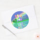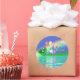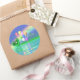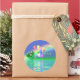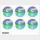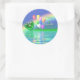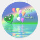 Un pegatina de cumpleaños de la piedra natural de mayo con mi diseño de un corazón esmeralda, globos y un arcoiris.