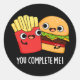 Pegatina Redonda Me Completaste Funny Burger Fries Pun Dark BG