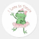 Pegatina Redonda Me encanta bailar balerina Frog Pink