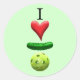 Un simple pegatina con el logo de "I love pickleball" sobre un fondo verde claro. Añádelo a su bolso de gimnasio, su botella de agua, su remo, etc.