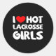 Pegatina Redonda Me encanta el Chica de Lacrosse caliente Deportes
