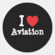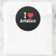 Pegatina Redonda Me encanta el personalizado de corazón de Aviación