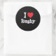 Pegatina Redonda Me encanta el personalizado del corazón de Rugby p