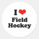 Pegatina Redonda Me encanta la camiseta de hockey sobre hierba