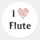 Pegatina Redonda Me encanta la flauta Red Heart of Music Notes