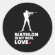 Pegatina Redonda Me encanta la silueta de biatlón estilo biatlón