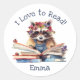 Pegatina Redonda Me encanta leer con cute bebé mapache