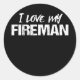 Pegatina Redonda Me encanta mi bombero, delgada línea roja