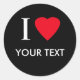 Pegatina Redonda Me encanta (tu texto) ropa personalizada