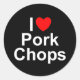 Pegatina Redonda Me encantan las chuletas de cerdo (corazón)